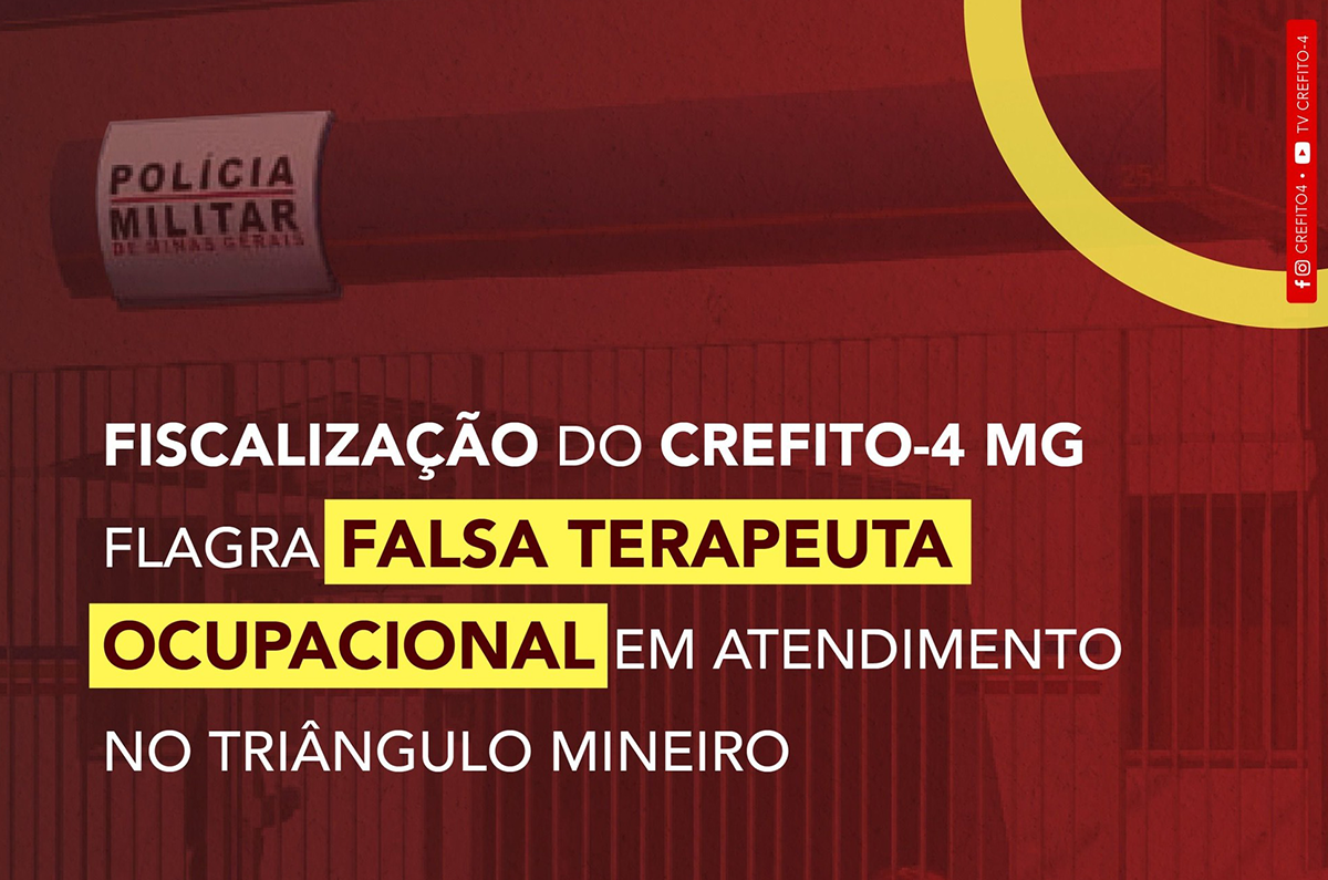 A agente fiscal do CREFITO-4 MG flagrou, nesta terça-feira (09), uma falsa terapeuta ocupacional prestando atendimento a um menor de idade em um Centro Multiprofissional de Saúde, em município localizado no Triângulo Mineiro. A leiga passou a ser investigada pela equipe de fiscalização após denúncia anônima e, também, devido a
